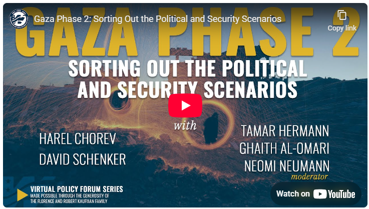 From the Washington Institue for Near East Policy: Gaza Phase 2: Sorting Out the Political and Security Scenarios: by Harel Chorev , David Schenker, Tamar Hermann, Ghaith al-Omari